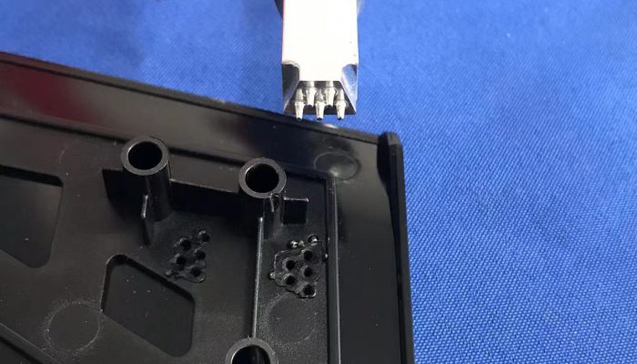 汽车后门护板上饰板骨架手持式35K900瓦超声波穿刺焊接机是利用超声波工艺进行焊接,将汽车后门护板上饰板骨架组…