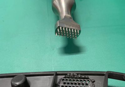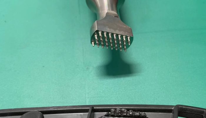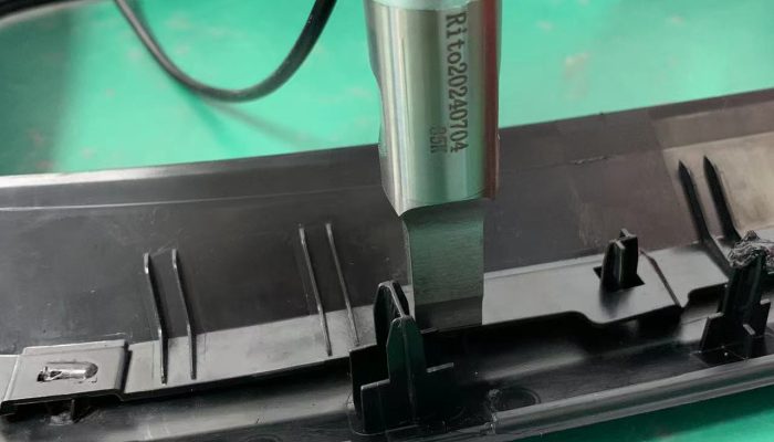汽车内饰面板框组件片筋横条35K900W手持式超声波铆点焊接机是利用超声波工艺进行焊接,将多个片筋超声波铆点焊…