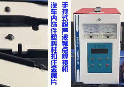 汽车内饰件塑料柱子固定住铁片手持式超声波铆点焊接机是利用超声波工艺进行焊接,将塑料柱子铆接成型扣住金属片,超声波焊接强度牢固,采用28K900W手握式超声波点焊机进行焊接。 汽车内…